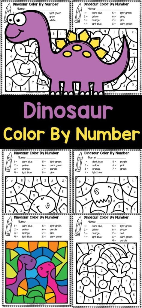 - Cute Color by Number Dinosaur worksheets or this other set of Dinosaur Color by Number Worksheets, Dinosaur Ten Frame Addition, Dino Number Recognition Games, and Free Dinosaur Math Worksheets